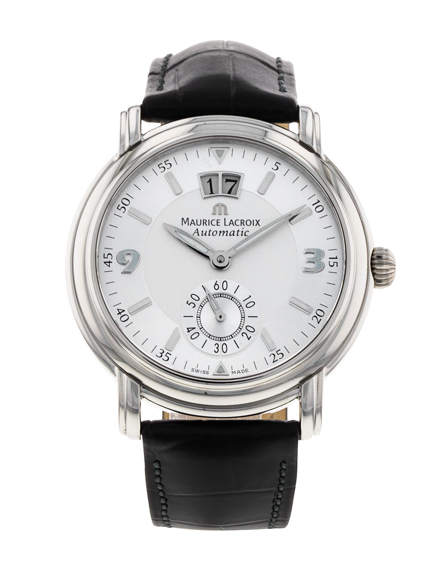 This Maurice Lacroix Masterpiece MP6378 has a silver quarter arabic dial and a leather strap. This Maurice Lacroix has undergone a thorough inspection of water resistance, accuracy, functionality and condition to determine the level of reconditioning required to meet our strict standards. It has also been referenced against technical documents and manufacturer records where available to ensure authenticity and a clean history. All our watches have a 24-month warranty for your peace of mind.
