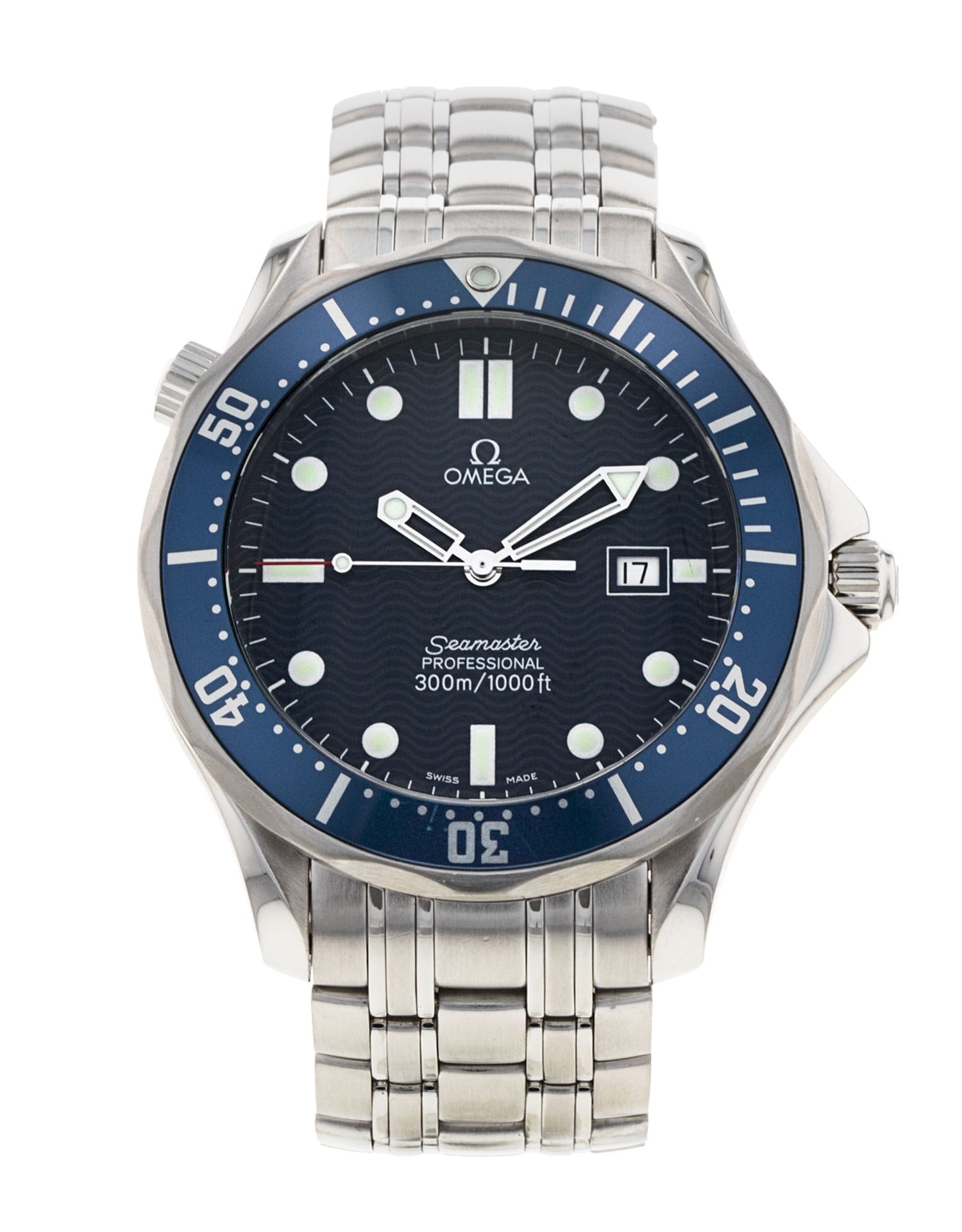 This Omega Seamaster 300m 2541.80.00 has a blue dial and a bracelet strap. This Omega has undergone a thorough inspection of accuracy, functionality and condition at our Omega certified service centre to determine the level of reconditioning required to meet our strict standards. It has also been checked against our records to ensure authenticity. All our watches have a 24-month warranty for your peace of mind.