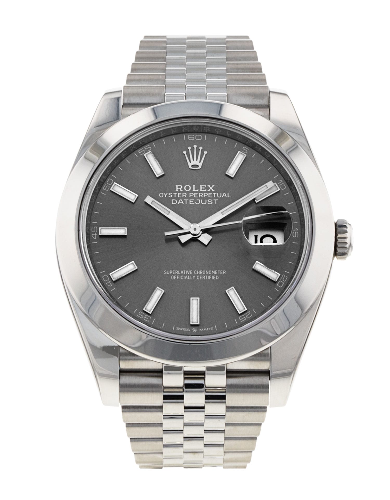 This Rolex Datejust 41 126300 has a slate baton dial and a bracelet strap. This Rolex has undergone a thorough inspection of water resistance, accuracy, functionality and condition to determine the level of reconditioning required to meet our strict standards. It has also been referenced against technical documents and manufacturer records where available to ensure authenticity and a clean history. All our watches have a 24-month warranty for your peace of mind. One of our skilled polishing technicians has removed marks on the case and bracelet of this watch, brought about by daily wear and tear, which is why this watch does not come with the remaining manufacturer’s warranty.