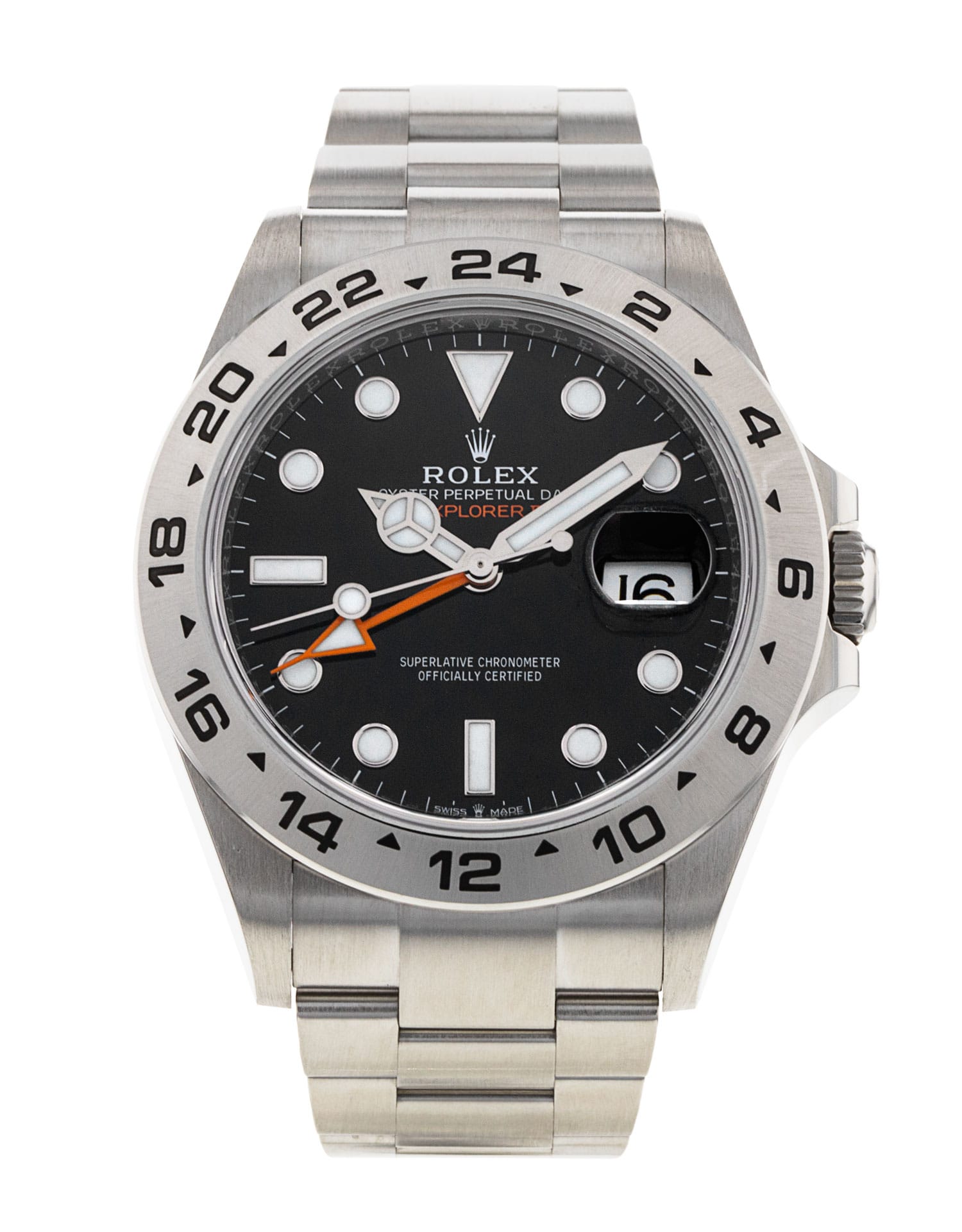 This Rolex Explorer II 226570 has a black dial and a bracelet strap. This Rolex has undergone a thorough inspection of water resistance, accuracy, functionality and condition to determine the level of reconditioning required to meet our strict standards. It has also been referenced against technical documents and manufacturer records where available to ensure authenticity and a clean history. All our watches have a 24-month warranty for your peace of mind. One of our skilled polishing technicians has removed marks on the case and bracelet of this watch, brought about by daily wear and tear, which is why this watch does not come with the remaining manufacturer’s warranty.