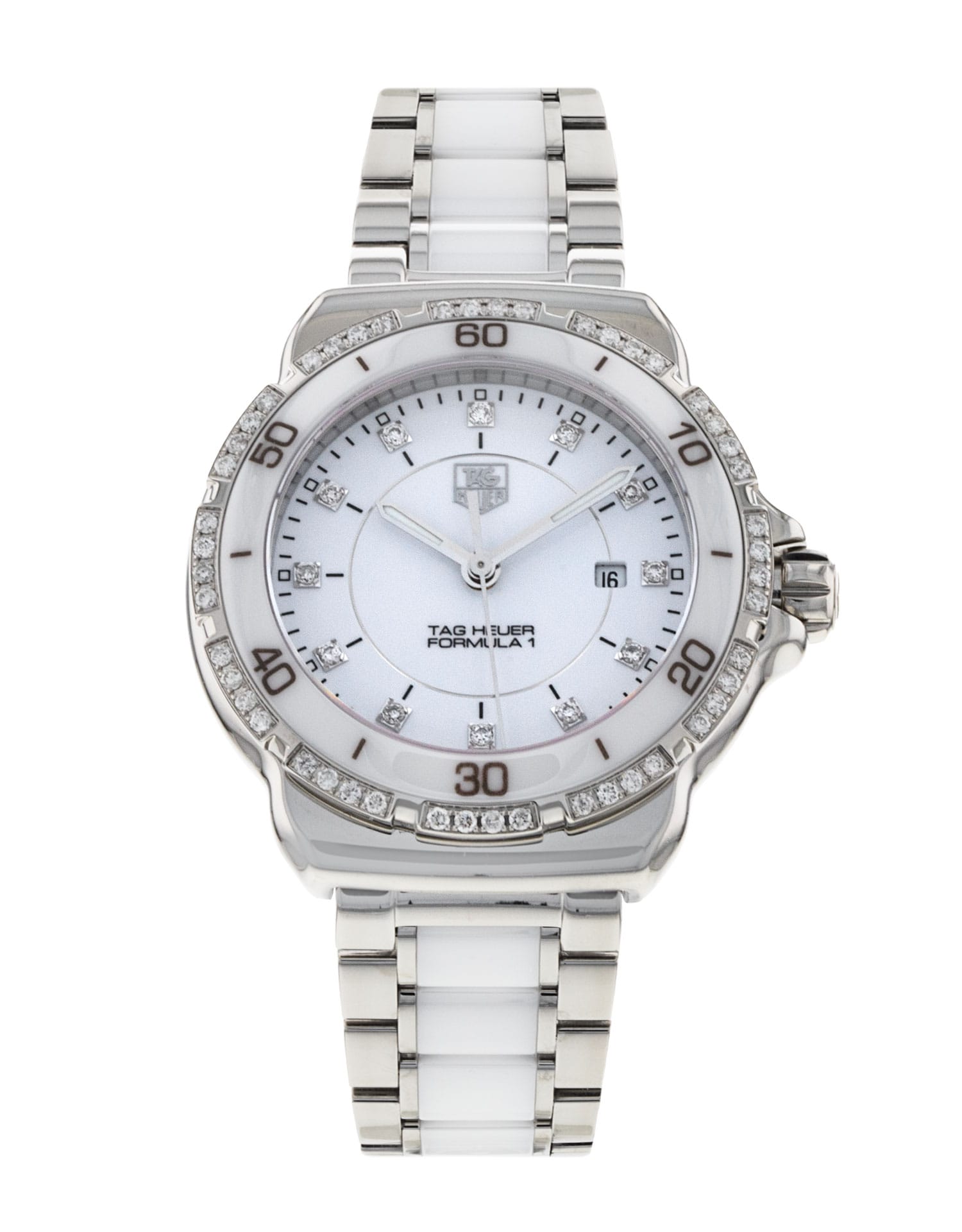 This Tag Heuer Formula 1 WAH1313.BA0868 has a white diamond dial and a bracelet strap. This Tag Heuer has undergone a thorough inspection of accuracy, functionality and condition at our Tag Heuer certified service centre to determine the level of reconditioning required to meet our strict standards. It has also been checked against our records to ensure authenticity. All our watches have a 24-month warranty for your peace of mind.